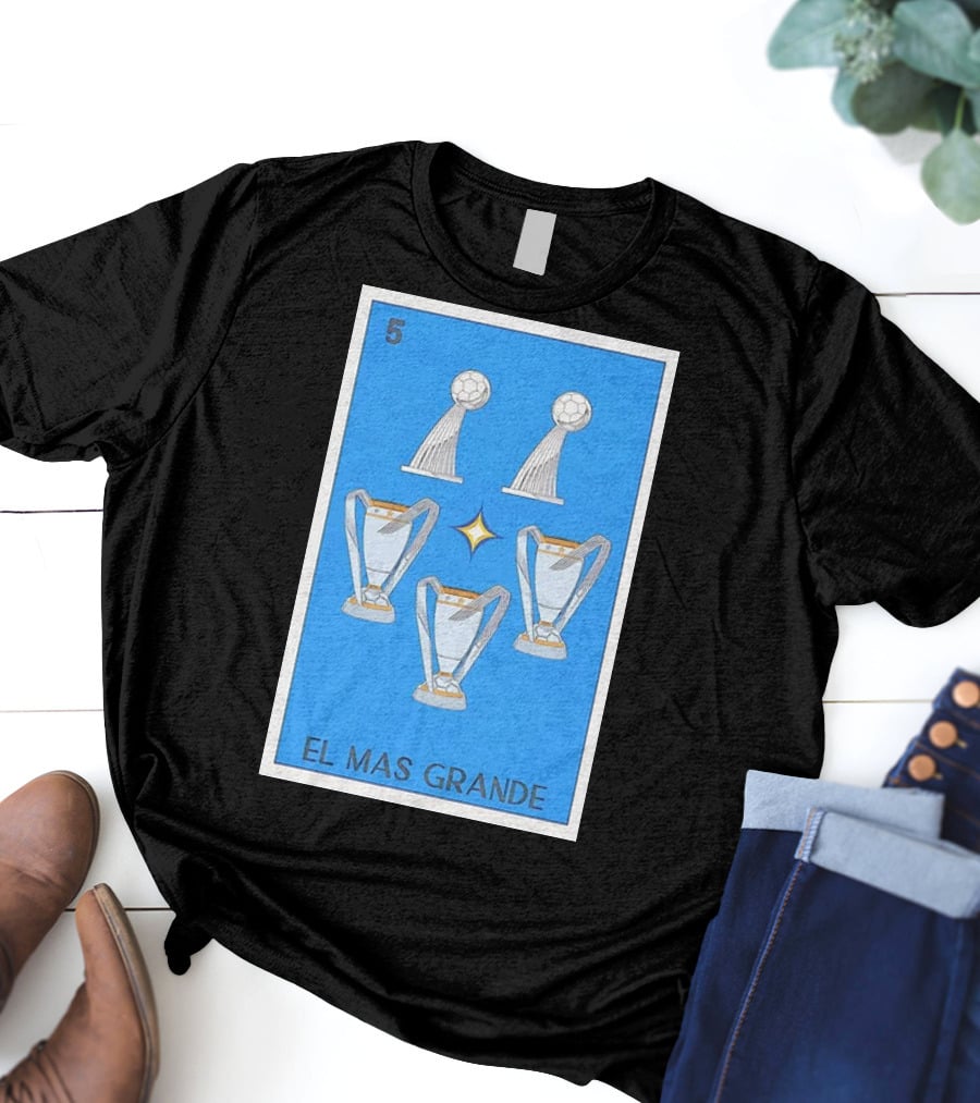 El Mas Grande Five Trophies Star Blue Background T-Shirt