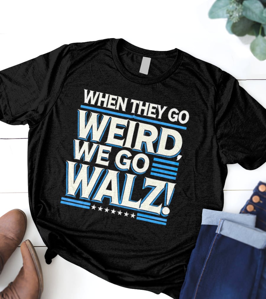When They Go Weird We Go Walz Shirt made from 100% pre-shrunk ring-spun cotton, unisex regular fit based on U.S. standard sizing. The shirt is designed, cut, sewn, and printed in the United States. Available in sizes S-5XL.