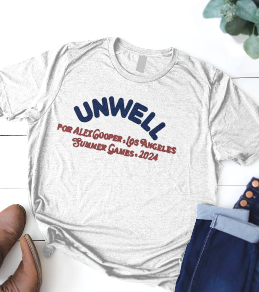 UNWELL Alex Cooper Los Angeles Summer Games Shirt made from 100% pre-shrunk ring-spun cotton, unisex regular fit based on U.S. standard sizing. The shirt is designed, cut, sewn, and printed in the United States. Available in sizes S-5XL.