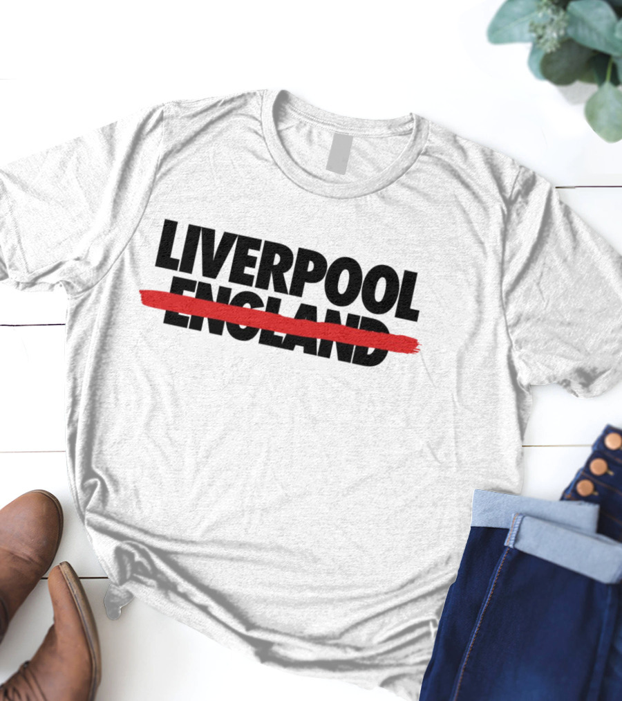 Allezlesrouges Liverpool Crossed Out England Shirt made from 100% pre-shrunk ring-spun cotton, unisex regular fit based on U.S. standard sizing. The shirt is designed, cut, sewn, and printed in the United States. Available in sizes S-5XL.