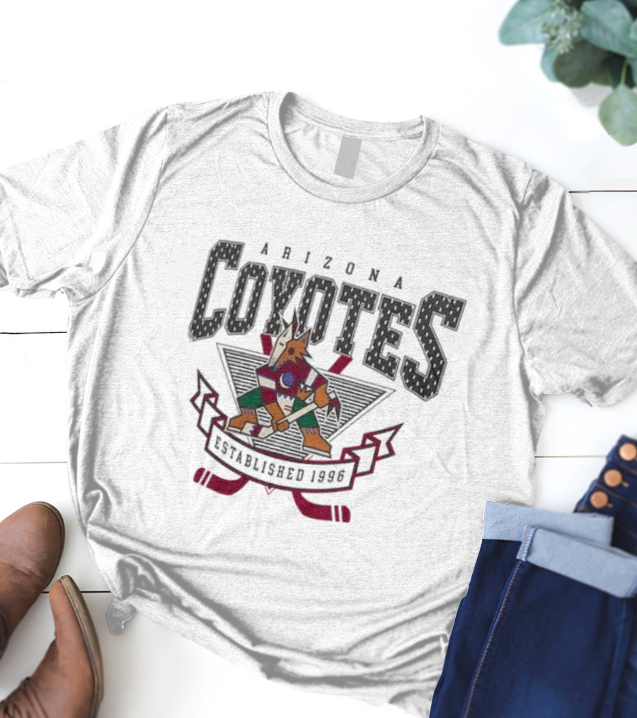 Arizona Coyotes Established 1996 Hockey Team Shirt made from 100% pre-shrunk ring-spun cotton, unisex regular fit based on U.S. standard sizing. The shirt is designed, cut, sewn, and printed in the United States. Available in sizes S-5XL.