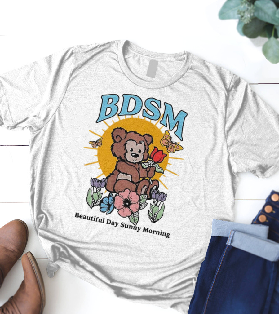 BDSM Bear with Flowers Beautiful Day Sunny Morning Shirt made from 100% pre-shrunk ring-spun cotton, unisex regular fit based on U.S. standard sizing. The shirt is designed, cut, sewn, and printed in the United States. Available in sizes S-5XL.