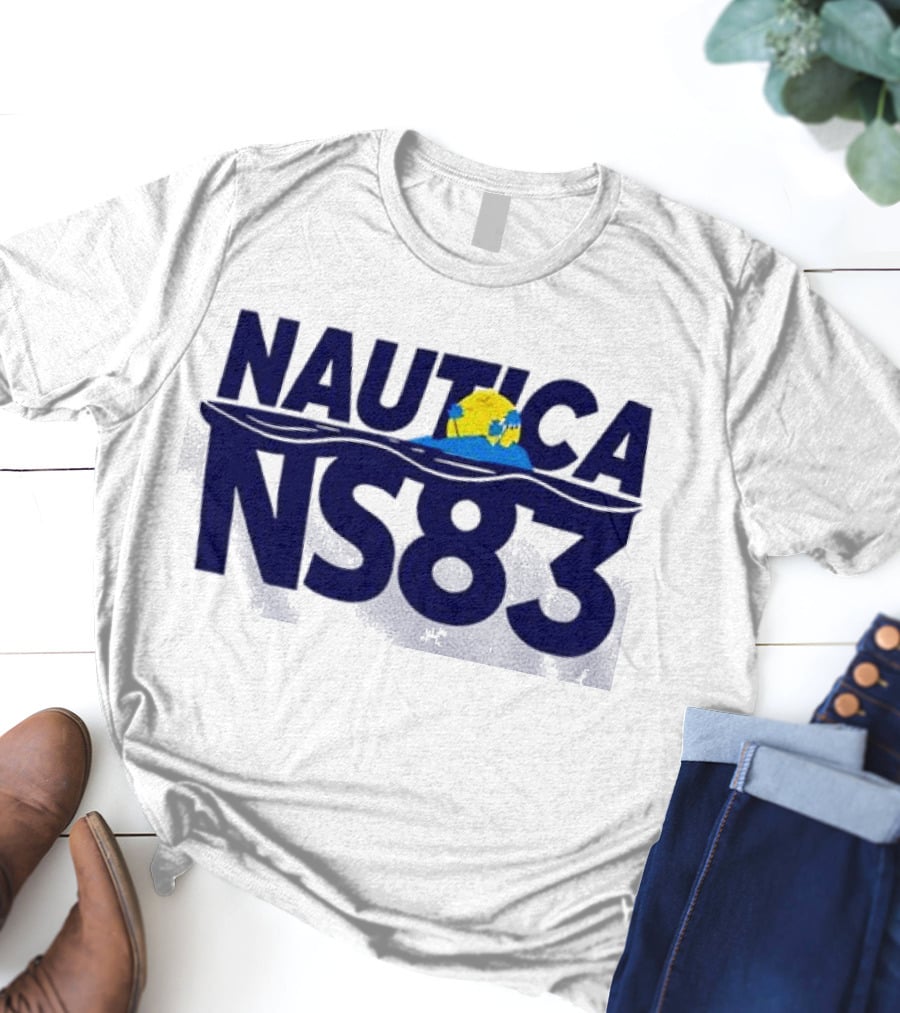 Nautica NS83 Ocean Wave and Globe Shirt made from 100% pre-shrunk ring-spun cotton, unisex regular fit based on U.S. standard sizing. The shirt is designed, cut, sewn, and printed in the United States. Available in sizes S-5XL.