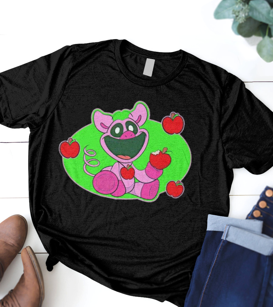 Pickypiggy Smiling Critters Happy Pig Eating Apples T-Shirt