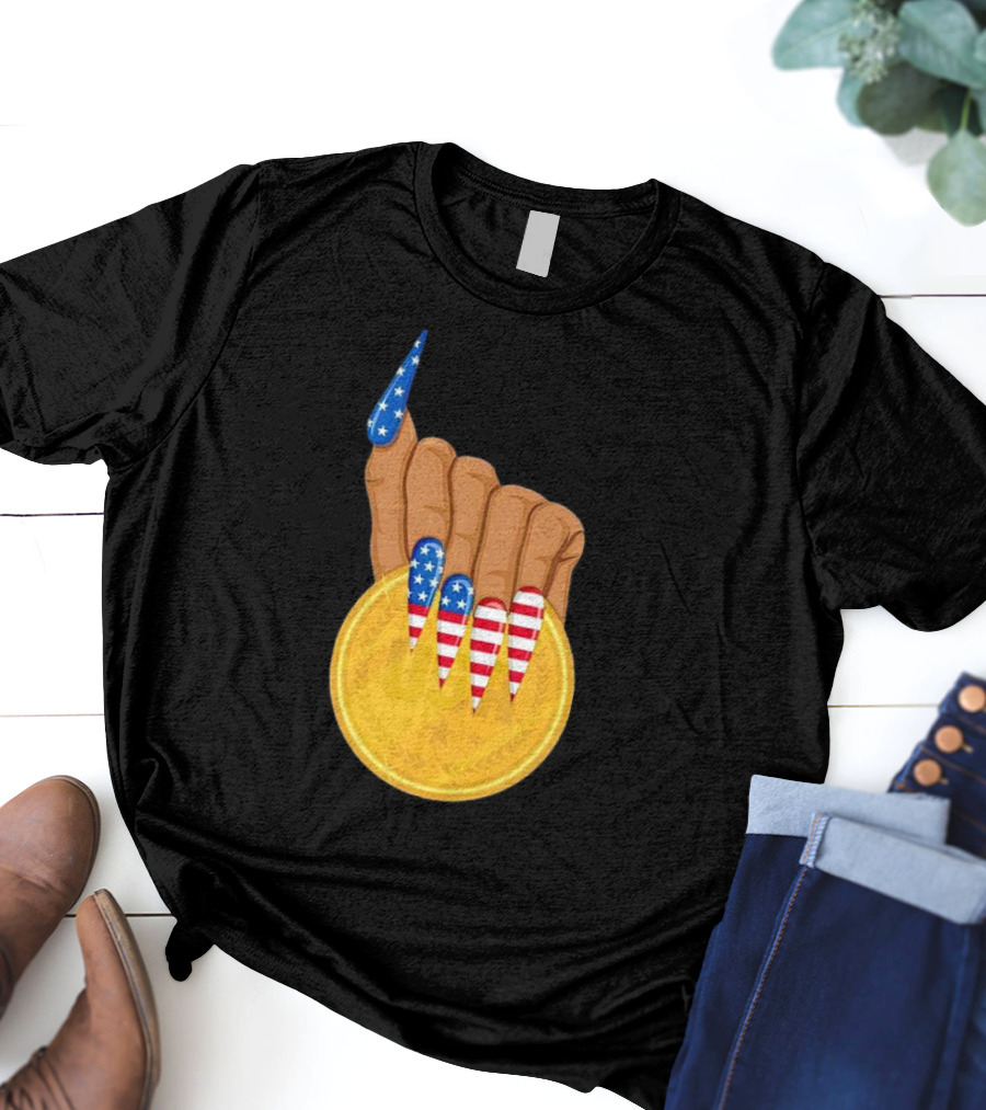USA Gold Medal Hand With American Flag Nails T-Shirt