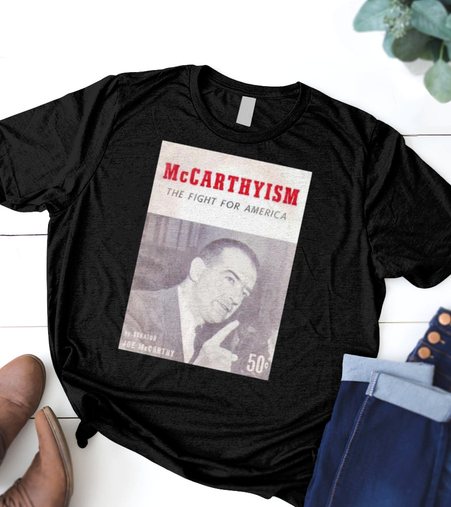 McCarthyism The Fight for America by Senator Joe McCarthy 50c Shirt made from 100% pre-shrunk ring-spun cotton, unisex regular fit based on U.S. standard sizing. The shirt is designed, cut, sewn, and printed in the United States. Available in sizes S-5XL.