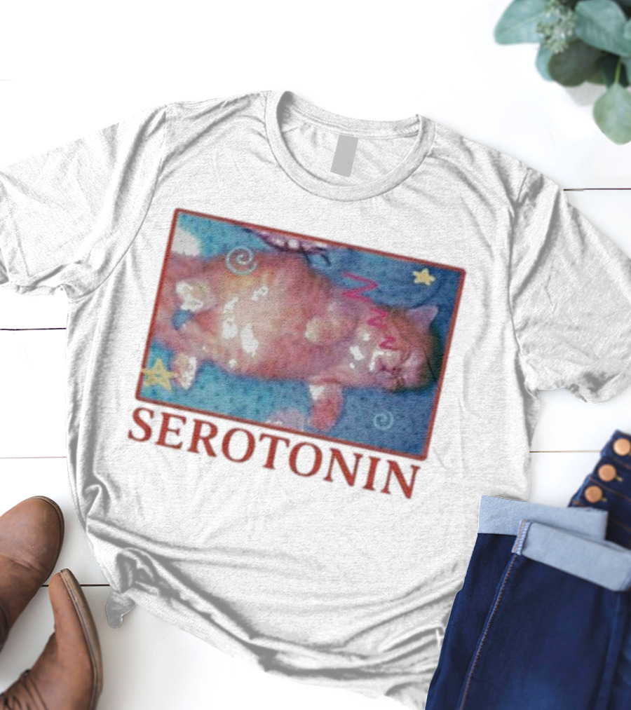 K45ink Serotonin Cat With Stars And Spirals T-Shirt