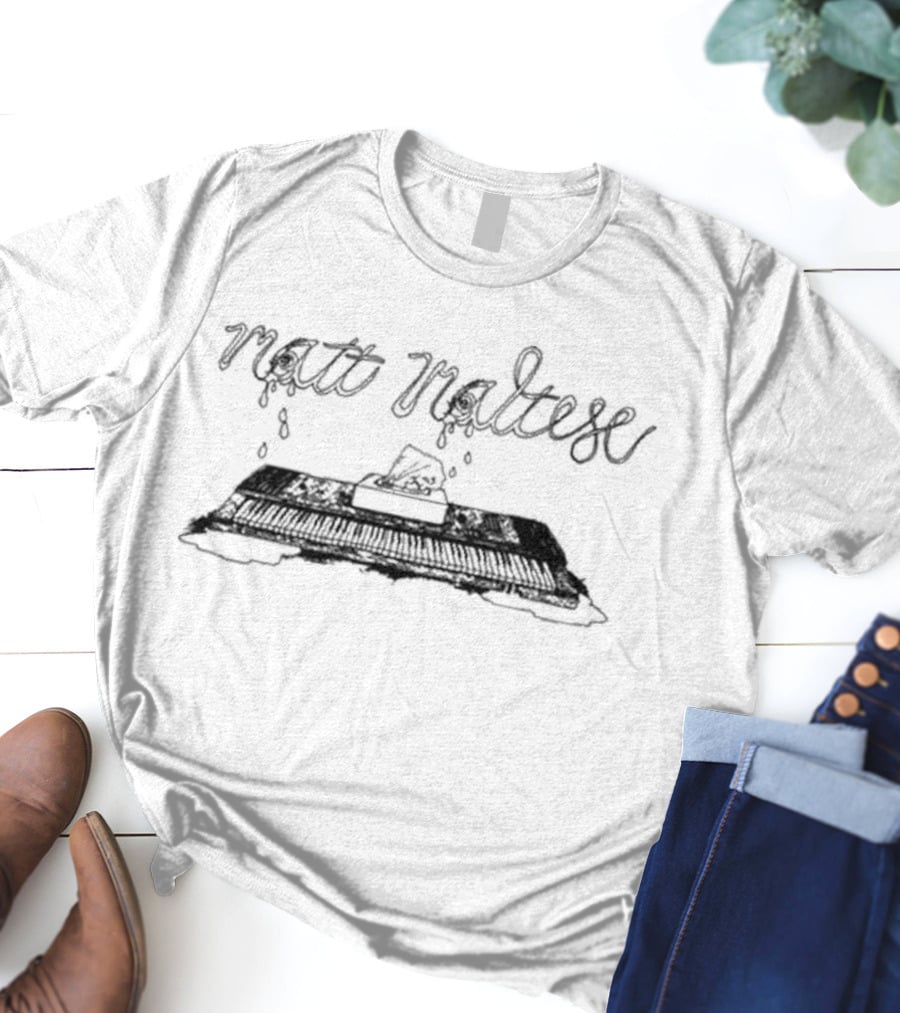 Matt Maltese Soaked Keyboard with Tears and Tissues Shirt made from 100% pre-shrunk ring-spun cotton, unisex regular fit based on U.S. standard sizing. The shirt is designed, cut, sewn, and printed in the United States. Available in sizes S-5XL.