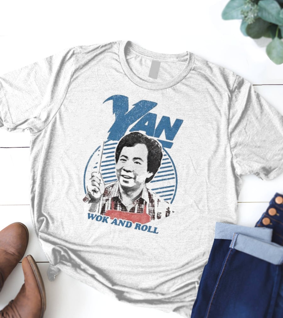 Yan Wok And Roll Retrokid Chef Shirt made from 100% pre-shrunk ring-spun cotton, unisex regular fit based on U.S. standard sizing. The shirt is designed, cut, sewn, and printed in the United States. Available in sizes S-5XL.