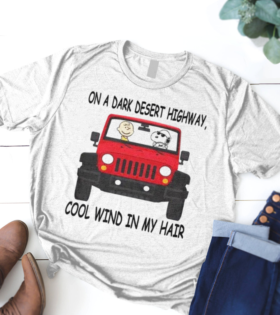 Snoopy On A Dark Desert Highway Cool Wind In My Hair Red Jeep Peanuts T-Shirt