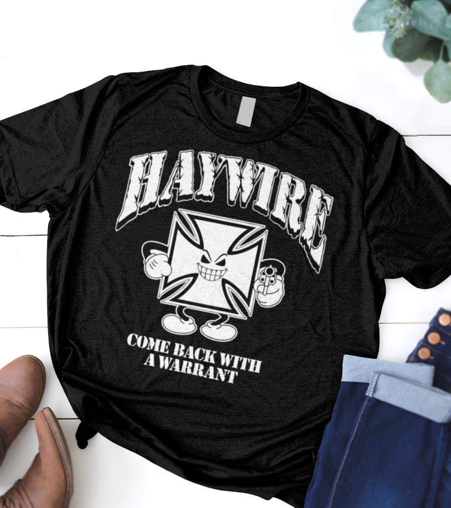 Haywire Come Back With A Warrant Grinning Iron Cross Emblem With Gun T-Shirt