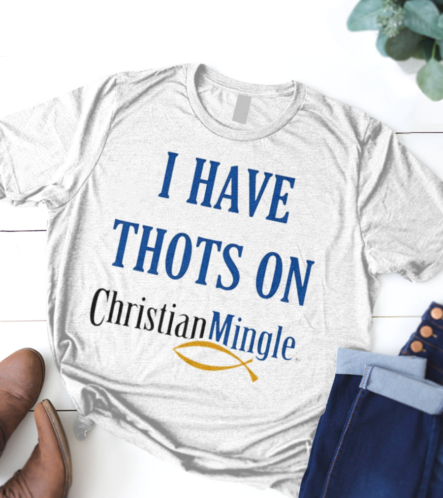 I Have Thots on Christian Mingle Christian Fish Shirt made from 100% pre-shrunk ring-spun cotton, unisex regular fit based on U.S. standard sizing. The shirt is designed, cut, sewn, and printed in the United States. Available in sizes S-5XL.