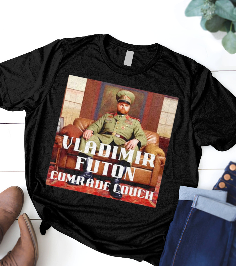 Vladimir Futon Comrade Couch Shirt made from 100% pre-shrunk ring-spun cotton, unisex regular fit based on U.S. standard sizing. The shirt is designed, cut, sewn, and printed in the United States. Available in sizes S-5XL.