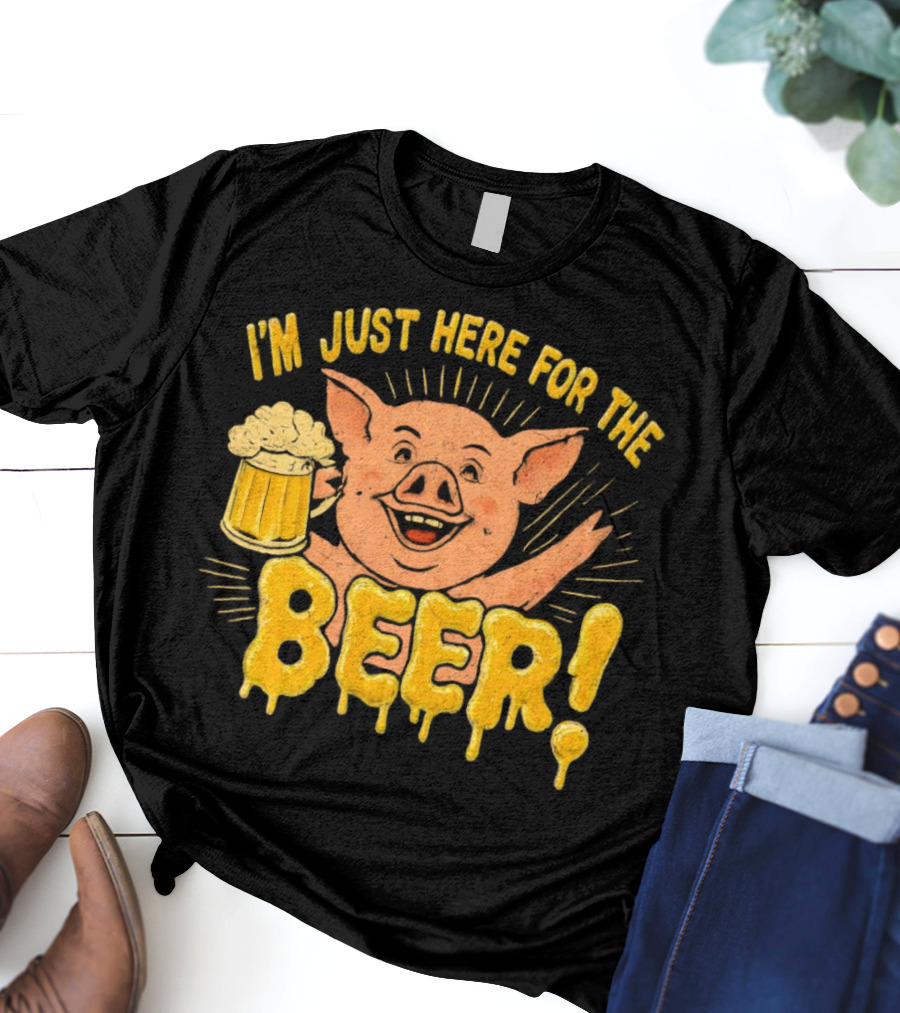 I’m Just Here For The Beer Pig With Beer Mug T-Shirt