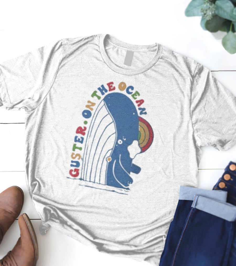 Guster On The Ocean Whale Rainbow Shirt made from 100% pre-shrunk ring-spun cotton, unisex regular fit based on U.S. standard sizing. The shirt is designed, cut, sewn, and printed in the United States. Available in sizes S-5XL.