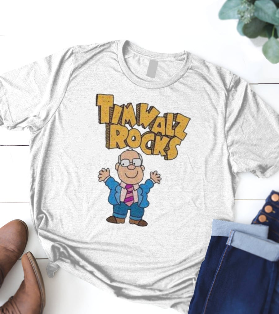 Tim Walz Rocks Cartoon Character In Tie And Suit T-Shirt