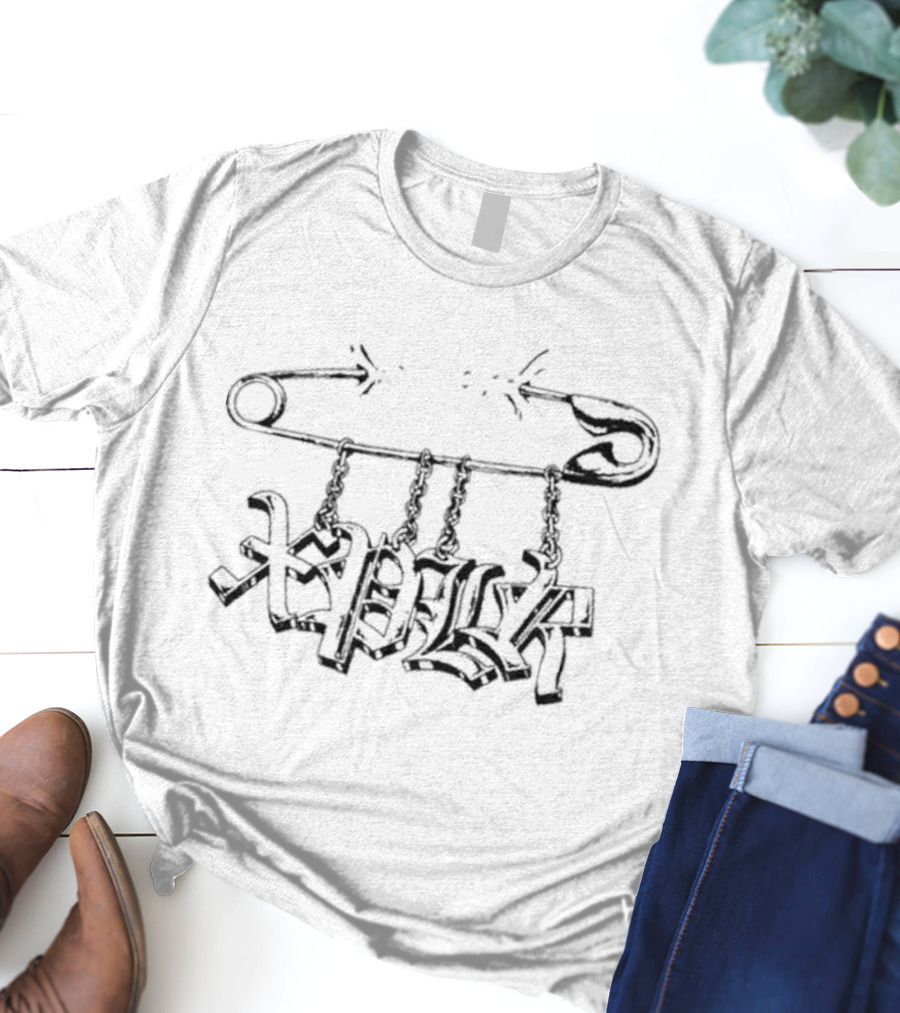 Xplr Punk Safety Pin Shirt made from 100% pre-shrunk ring-spun cotton, unisex regular fit based on U.S. standard sizing. The shirt is designed, cut, sewn, and printed in the United States. Available in sizes S-5XL.