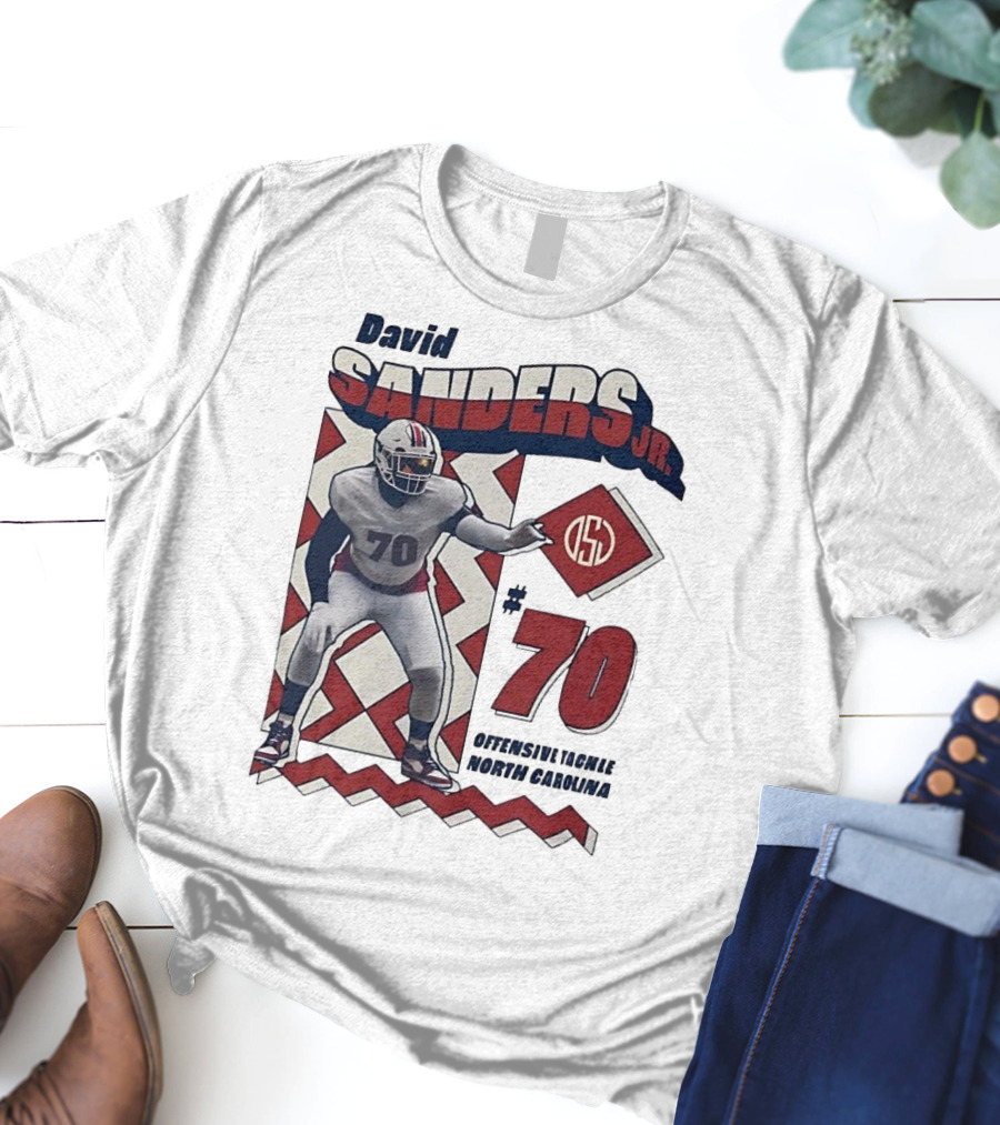 David Sanders Jr. 70 Offensive Tackle North Carolina Retro Football T-Shirt