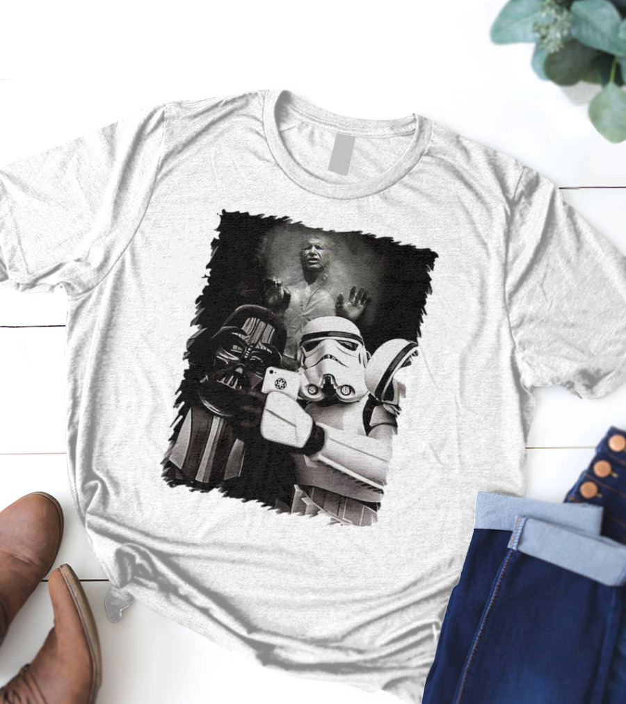 Star Wars Darth Vader And Stormtrooper Taking Selfie With Han Solo Frozen In Carbonite T-Shirt