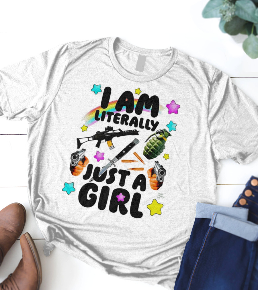 I Am Literally Just A Girl Rainbow Grenade Stars Guns T-Shirt
