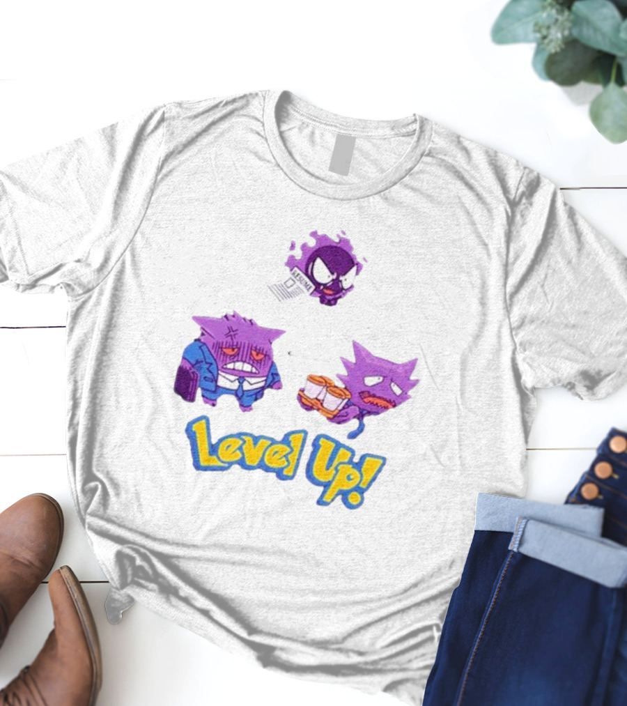 Gengar Evolution Level Up Journey with Resume and Briefcase Shirt made from 100% pre-shrunk ring-spun cotton, unisex regular fit based on U.S. standard sizing. The shirt is designed, cut, sewn, and printed in the United States. Available in sizes S-5XL.