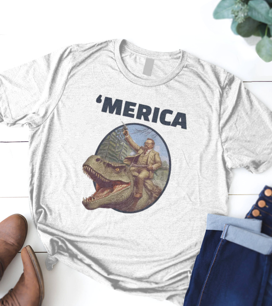 Macrodosing 'Merica Roosevelt Riding Dinosaur With Gun T-Shirt