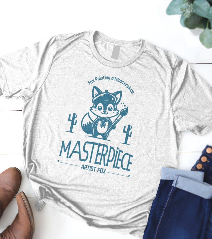 Fox Painting a Masterpiece Artist Fox MASTERPiECE Shirt made from 100% pre-shrunk ring-spun cotton, unisex regular fit based on U.S. standard sizing. The shirt is designed, cut, sewn, and printed in the United States. Available in sizes S-5XL.