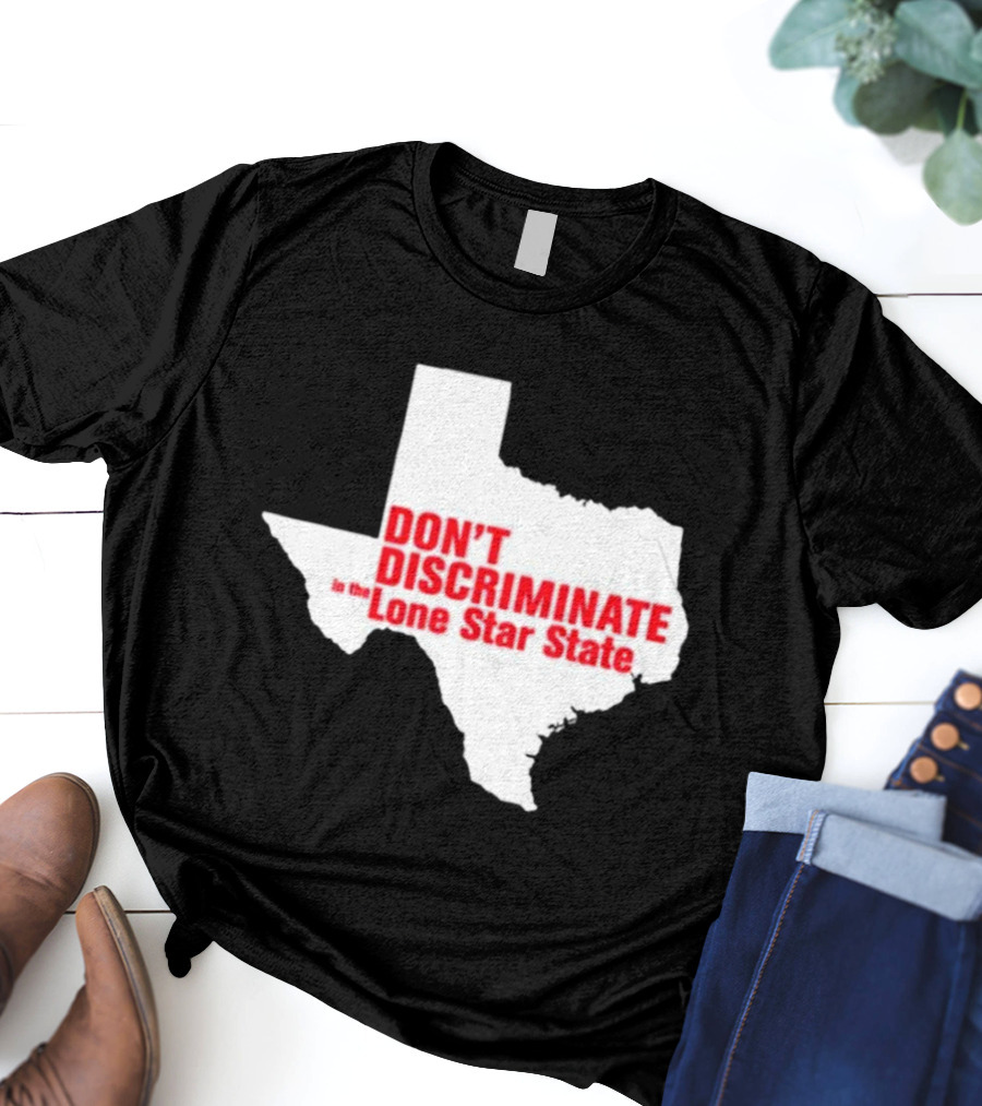 Don't Discriminate in the Lone Star State Shirt made from 100% pre-shrunk ring-spun cotton, unisex regular fit based on U.S. standard sizing. The shirt is designed, cut, sewn, and printed in the United States. Available in sizes S-5XL.