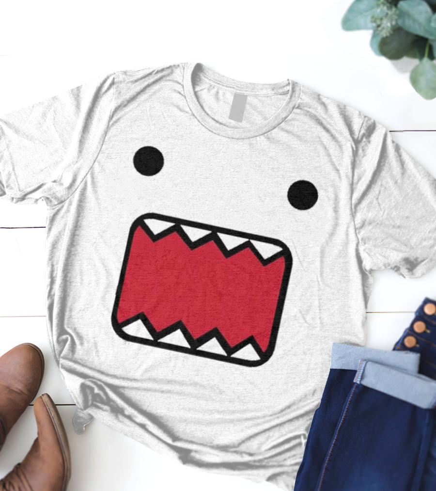 Mamono World Nostalgia Domo Kun Face Shirt made from 100% pre-shrunk ring-spun cotton, unisex regular fit based on U.S. standard sizing. The shirt is designed, cut, sewn, and printed in the United States. Available in sizes S-5XL.