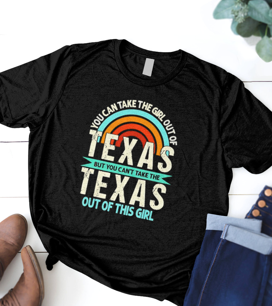 You Can Take The Girl Out Of Texas But You Can’t Take The Texas Out Of This Girl Rainbow Shirt made from 100% pre-shrunk ring-spun cotton, unisex regular fit based on U.S. standard sizing. The shirt is designed, cut, sewn, and printed in the United States. Available in sizes S-5XL.