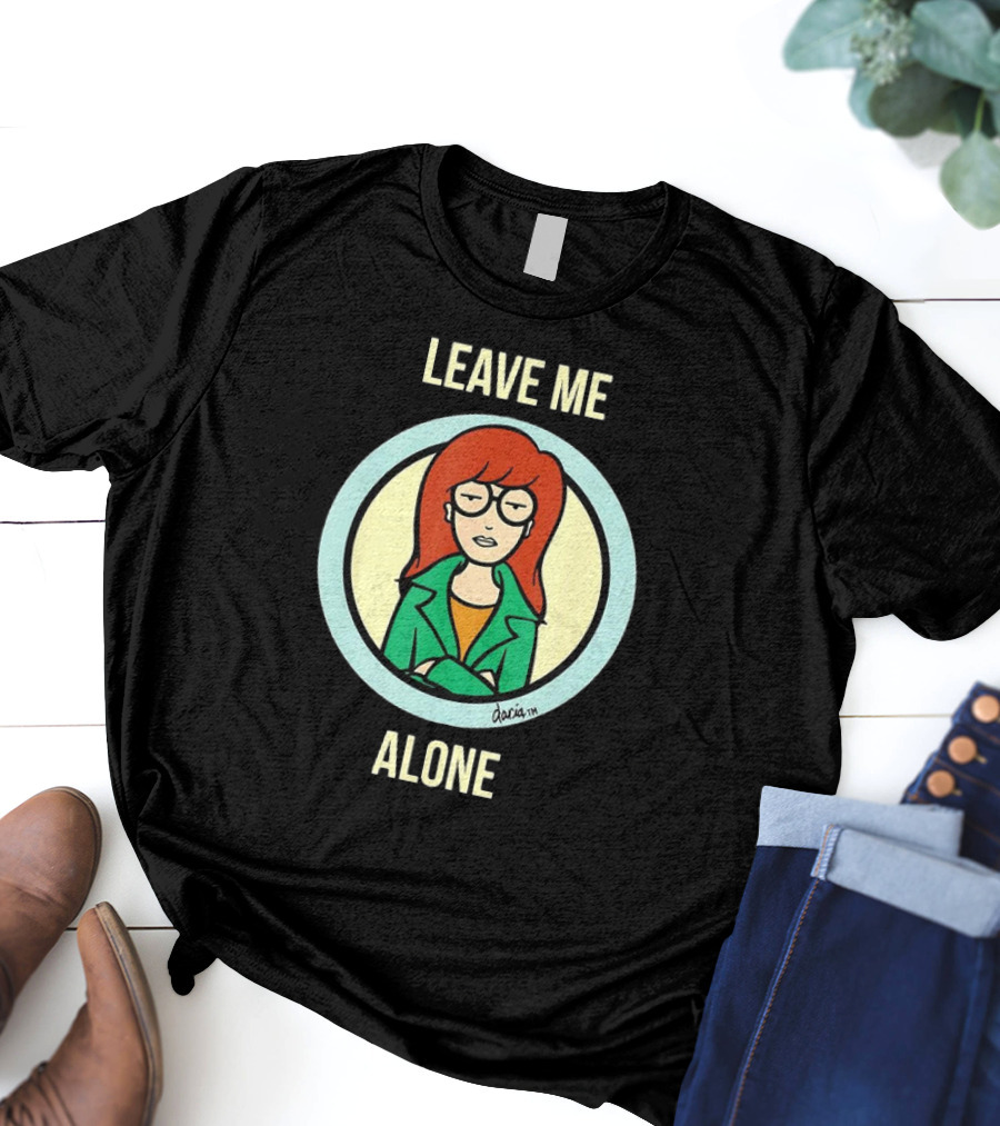Leave Me Alone Daria Shirt made from 100% pre-shrunk ring-spun cotton, unisex regular fit based on U.S. standard sizing. The shirt is designed, cut, sewn, and printed in the United States. Available in sizes S-5XL.