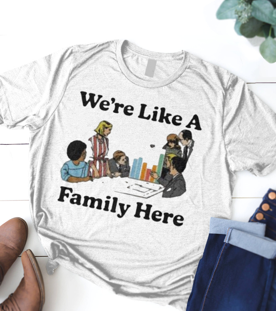 Middleclassfancy Merch Store We're Like A Family Here Retro Office Meeting Scene T-Shirt