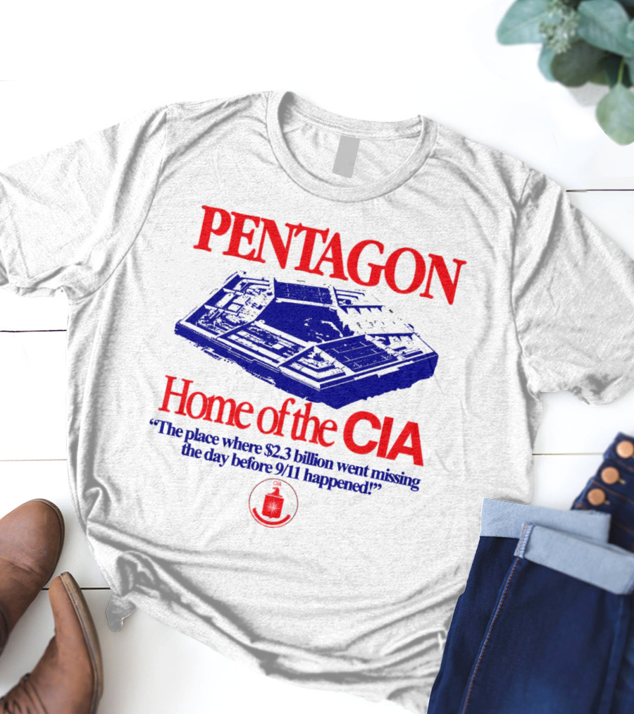 Pentagon Home of the CIA Where $2.3 Billion Went Missing Before 9/11 Shirt made from 100% pre-shrunk ring-spun cotton, unisex regular fit based on U.S. standard sizing. The shirt is designed, cut, sewn, and printed in the United States. Available in sizes S-5XL.