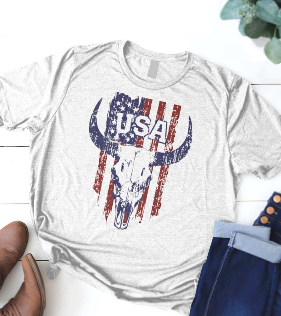 USA Buffalo Skull American Flag Patriotic T-Shirt