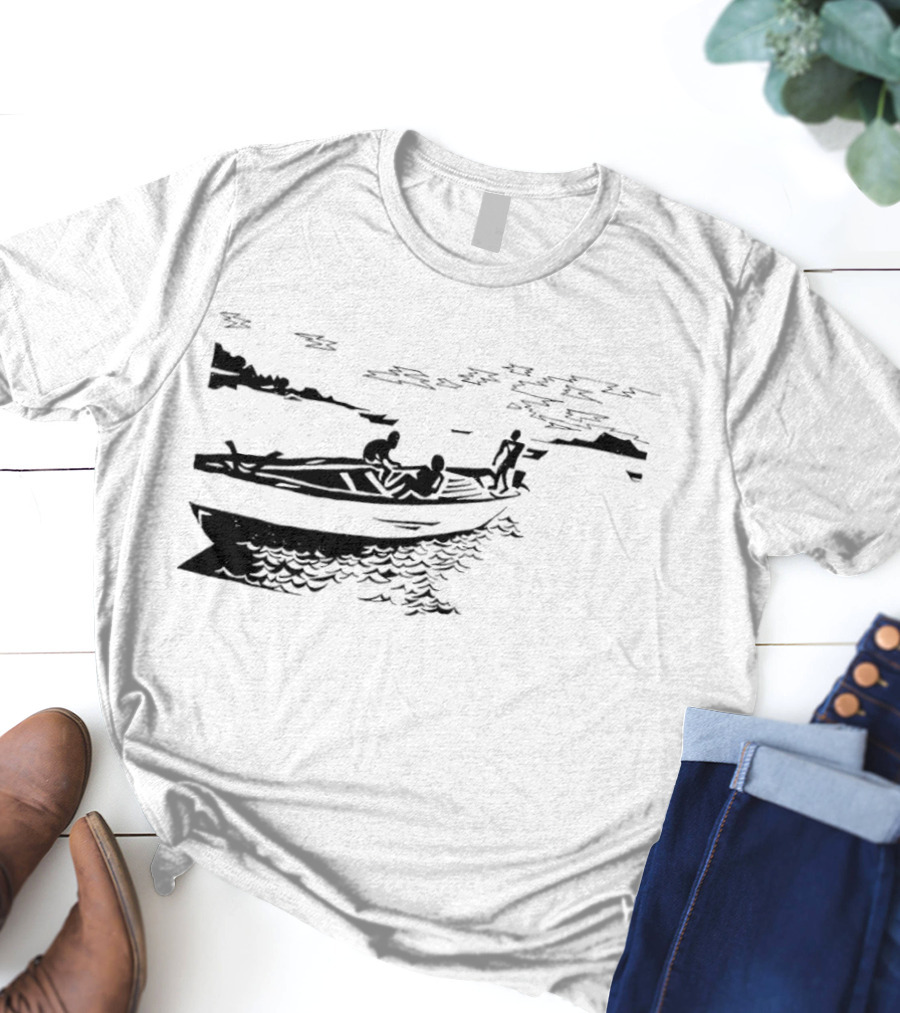 Boat on Lake Malawi Silhouette Scene Shirt made from 100% pre-shrunk ring-spun cotton, unisex regular fit based on U.S. standard sizing. The shirt is designed, cut, sewn, and printed in the United States. Available in sizes S-5XL.