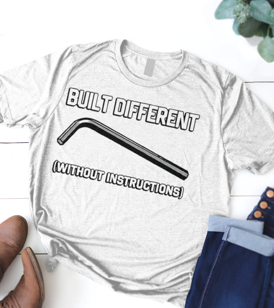Built Different Without Instructions Allen Wrench Shirt made from 100% pre-shrunk ring-spun cotton, unisex regular fit based on U.S. standard sizing. The shirt is designed, cut, sewn, and printed in the United States. Available in sizes S-5XL.