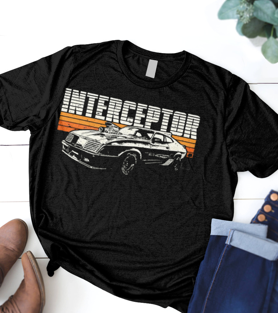 Interceptor Mad Max Vintage Car Shirt made from 100% pre-shrunk ring-spun cotton, unisex regular fit based on U.S. standard sizing. The shirt is designed, cut, sewn, and printed in the United States. Available in sizes S-5XL.