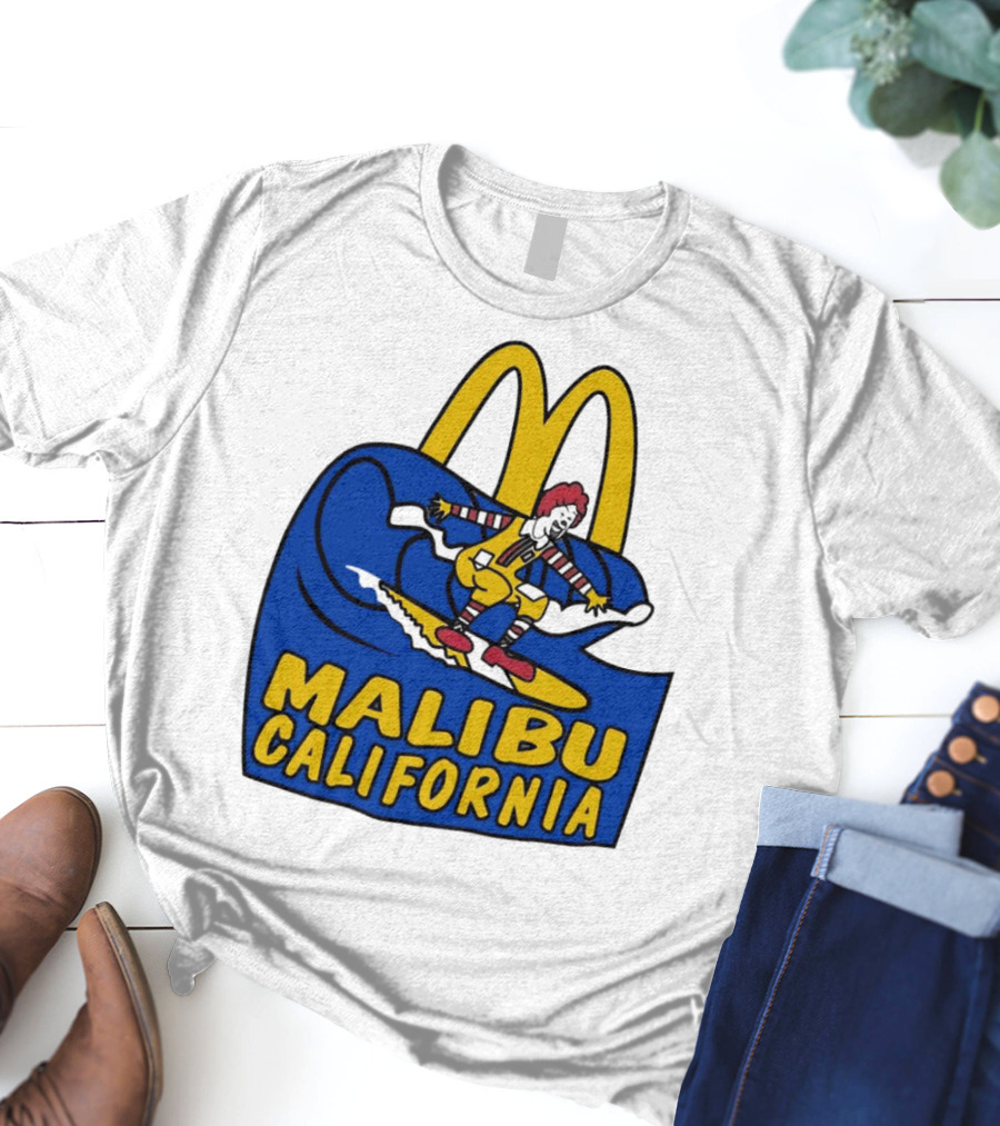McDonald’s Clown Surfing Malibu California Waves Shirt made from 100% pre-shrunk ring-spun cotton, unisex regular fit based on U.S. standard sizing. The shirt is designed, cut, sewn, and printed in the United States. Available in sizes S-5XL.