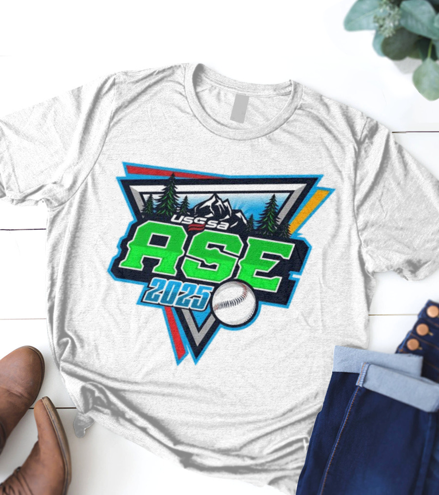 USSSA Arkansas ASE 2025 Baseball Mountains Shirt made from 100% pre-shrunk ring-spun cotton, unisex regular fit based on U.S. standard sizing. The shirt is designed, cut, sewn, and printed in the United States. Available in sizes S-5XL.