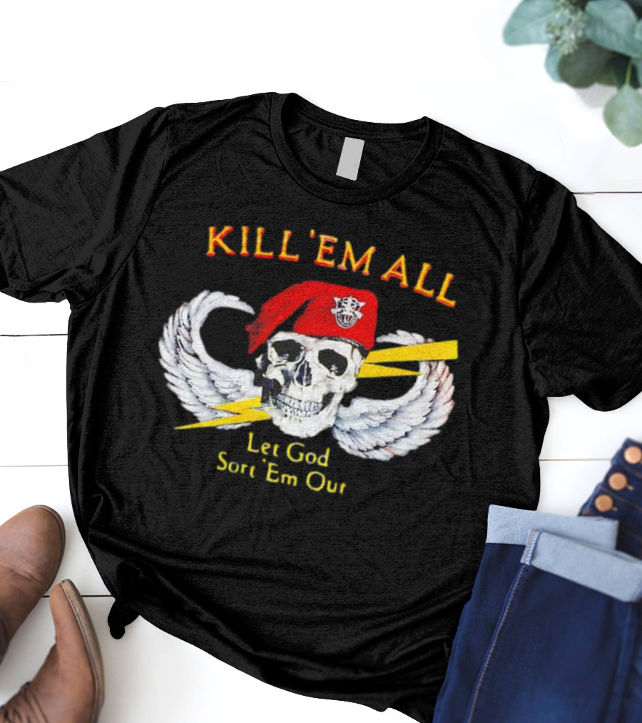KILL 'EM ALL Let God Sort 'Em Out Skull With Wings And Red Beret T-Shirt