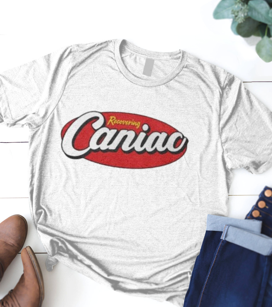 Middle Class Fancy Recovering Caniac Retro Style Bold Red Oval Shirt made from 100% pre-shrunk ring-spun cotton, unisex regular fit based on U.S. standard sizing. The shirt is designed, cut, sewn, and printed in the United States. Available in sizes S-5XL.