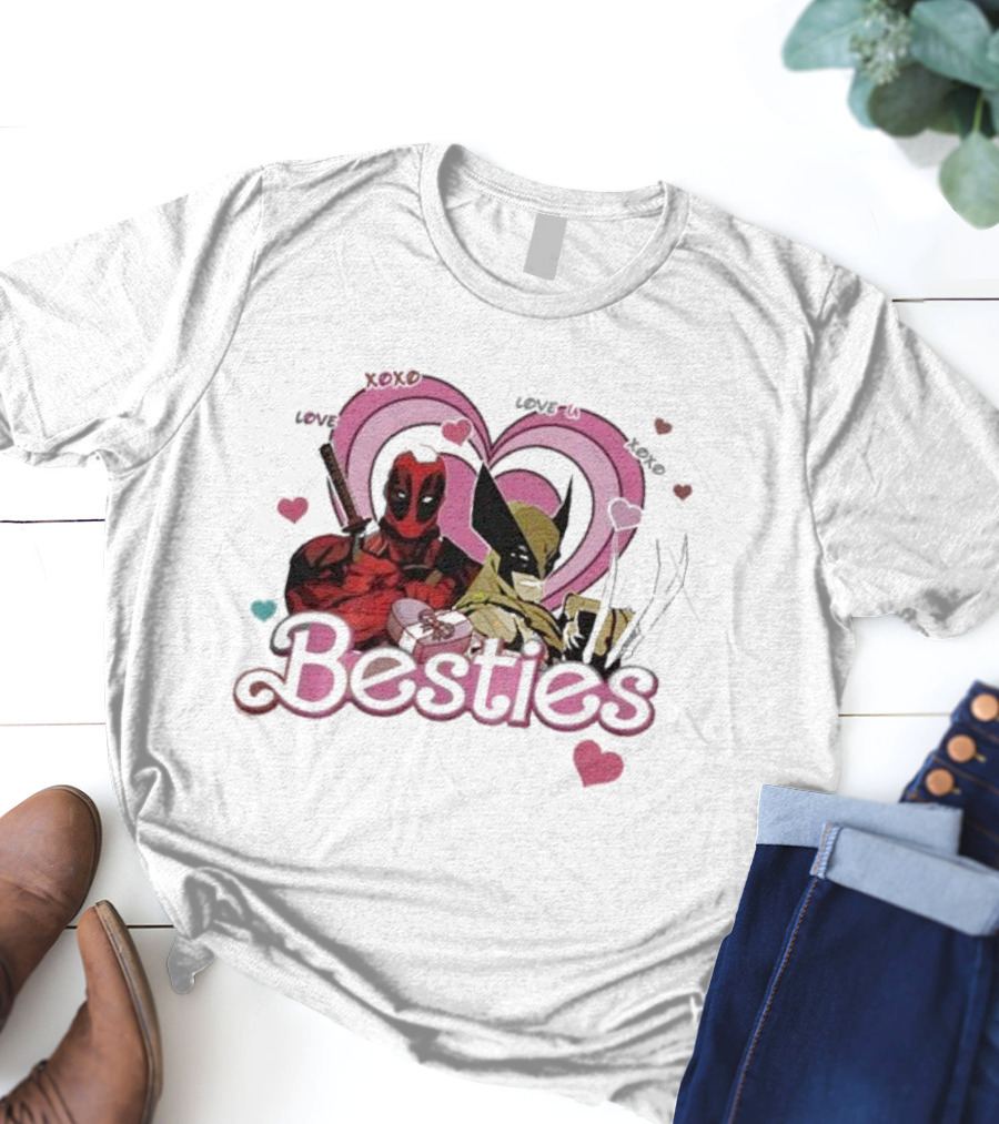 Deadpool Wolverine Love Hearts Besties Cute Friends T-Shirt