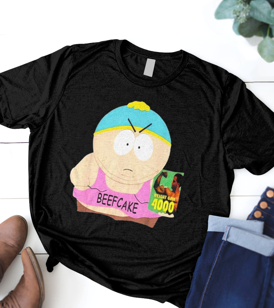 Eric Cartman Beefcake Weight Gain 4000 Promotion 2000 Shirt made from 100% pre-shrunk ring-spun cotton, unisex regular fit based on U.S. standard sizing. The shirt is designed, cut, sewn, and printed in the United States. Available in sizes S-5XL.