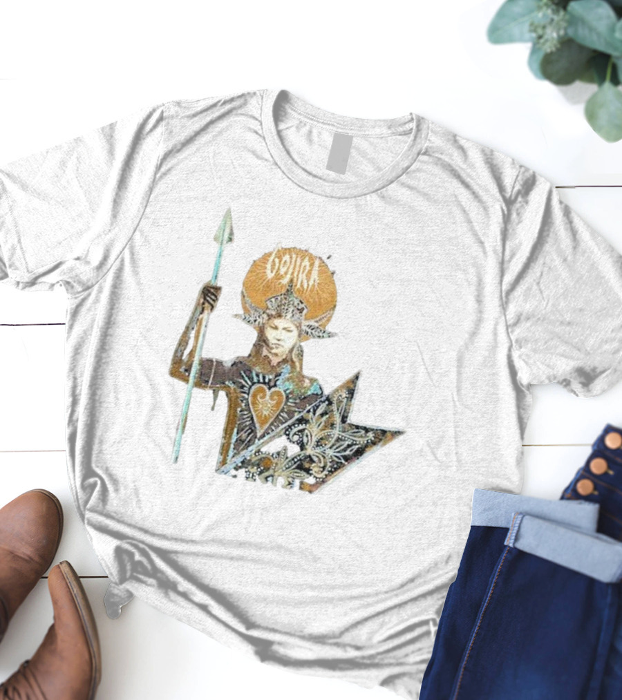Gojira Fortitude Warrior Album Art Iconic Spear Holder Shirt made from 100% pre-shrunk ring-spun cotton, unisex regular fit based on U.S. standard sizing. The shirt is designed, cut, sewn, and printed in the United States. Available in sizes S-5XL.