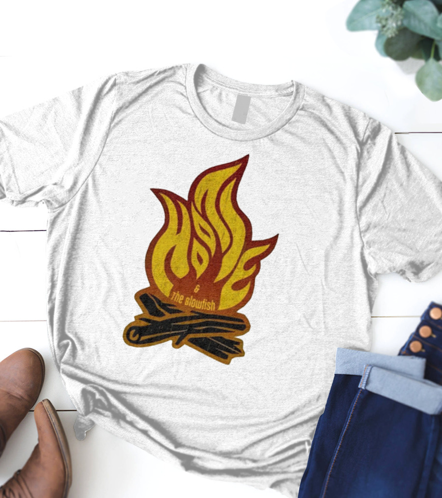 Hootie and The Blowfish Campfire Flame Logs Shirt made from 100% pre-shrunk ring-spun cotton, unisex regular fit based on U.S. standard sizing. The shirt is designed, cut, sewn, and printed in the United States. Available in sizes S-5XL.