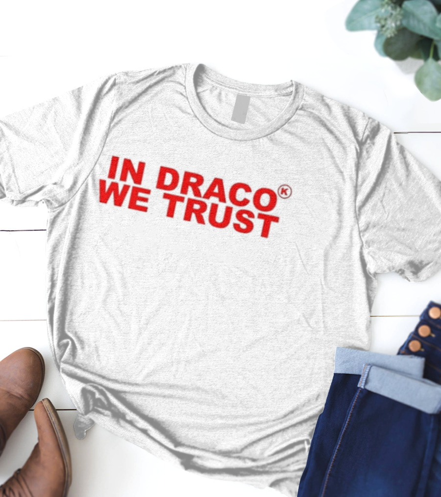 Kixkzgalore In Draco We Trust New Red Shirt made from 100% pre-shrunk ring-spun cotton, unisex regular fit based on U.S. standard sizing. The shirt is designed, cut, sewn, and printed in the United States. Available in sizes S-5XL.