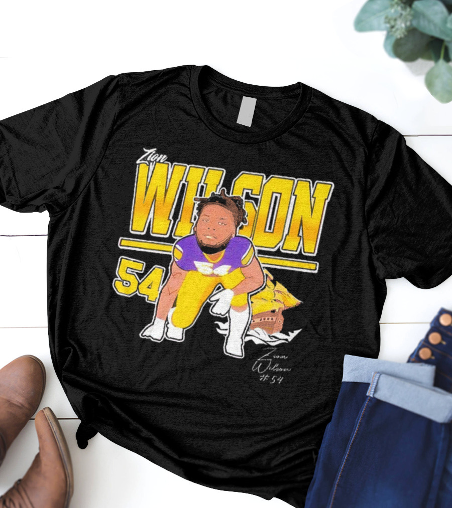 Zion Wilson 54 East Carolina Pirates Cartoon Football Player Shirt made from 100% pre-shrunk ring-spun cotton, unisex regular fit based on U.S. standard sizing. The shirt is designed, cut, sewn, and printed in the United States. Available in sizes S-5XL.
