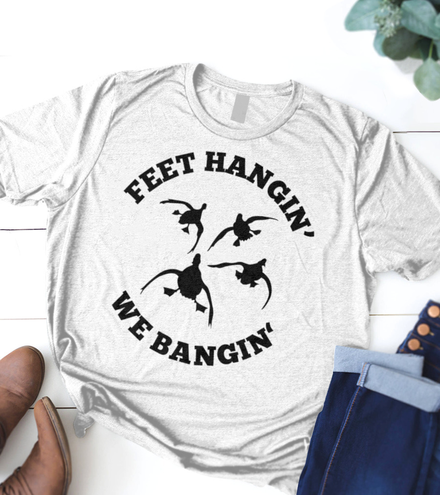 Feet Hangin' We Bangin' Duck Shirt made from 100% pre-shrunk ring-spun cotton, unisex regular fit based on U.S. standard sizing. The shirt is designed, cut, sewn, and printed in the United States. Available in sizes S-5XL.