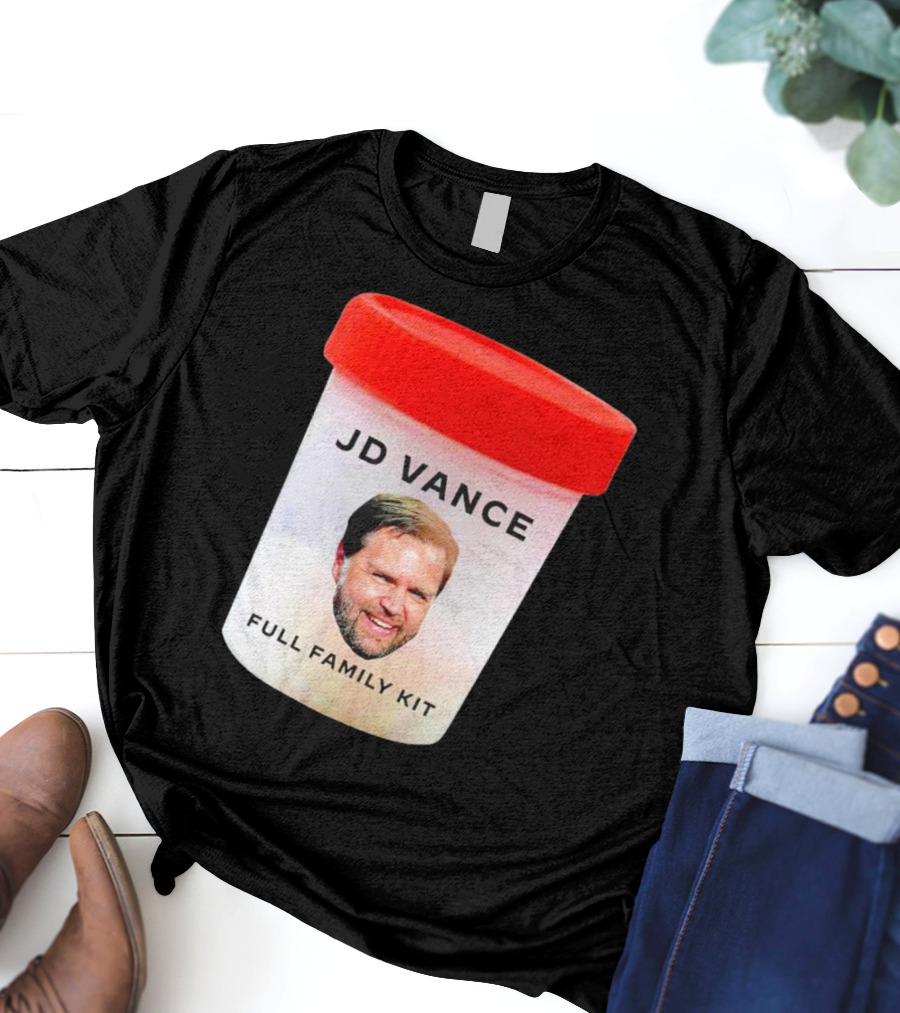 JD Vance Full Family Kit Shirt made from 100% pre-shrunk ring-spun cotton, unisex regular fit based on U.S. standard sizing. The shirt is designed, cut, sewn, and printed in the United States. Available in sizes S-5XL.