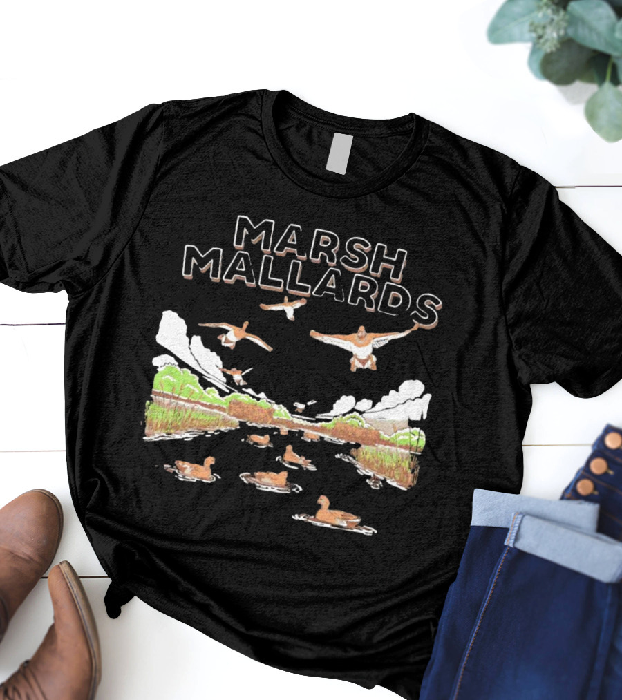 MARSH MALLARDS HUNTING DUCK SCENE JUMBO ANIMALS Shirt made from 100% pre-shrunk ring-spun cotton, unisex regular fit based on U.S. standard sizing. The shirt is designed, cut, sewn, and printed in the United States. Available in sizes S-5XL.
